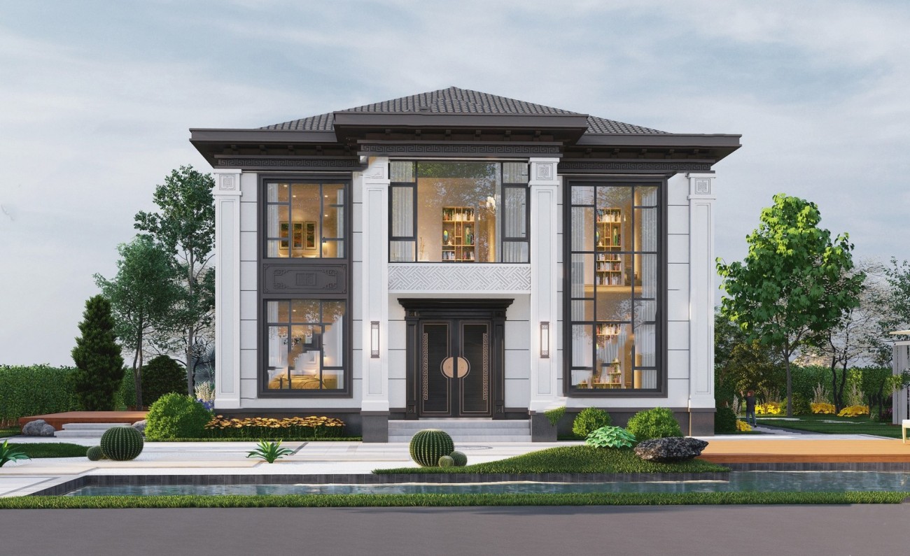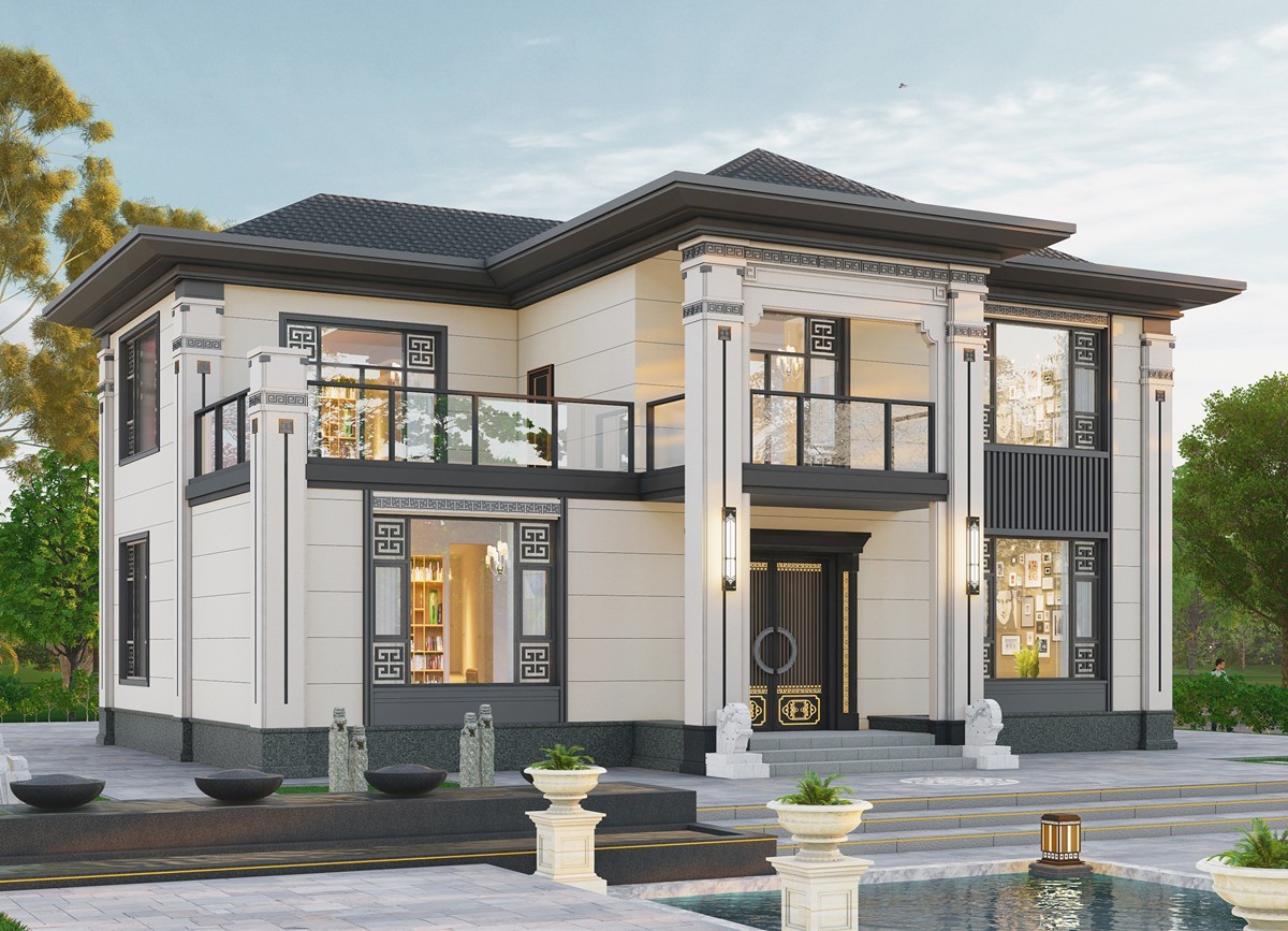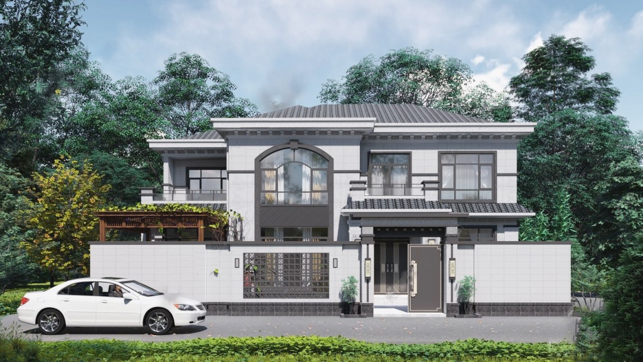 潍坊011 两层新中式(15.43x12.66米)-【易设计】