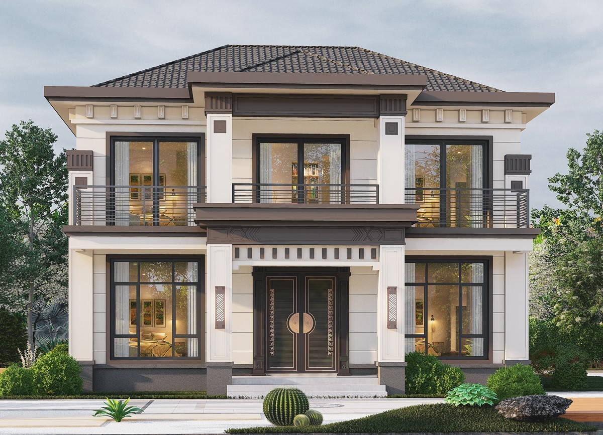 潍坊005 两层新中式(11.36x11.76米)-【易设计】