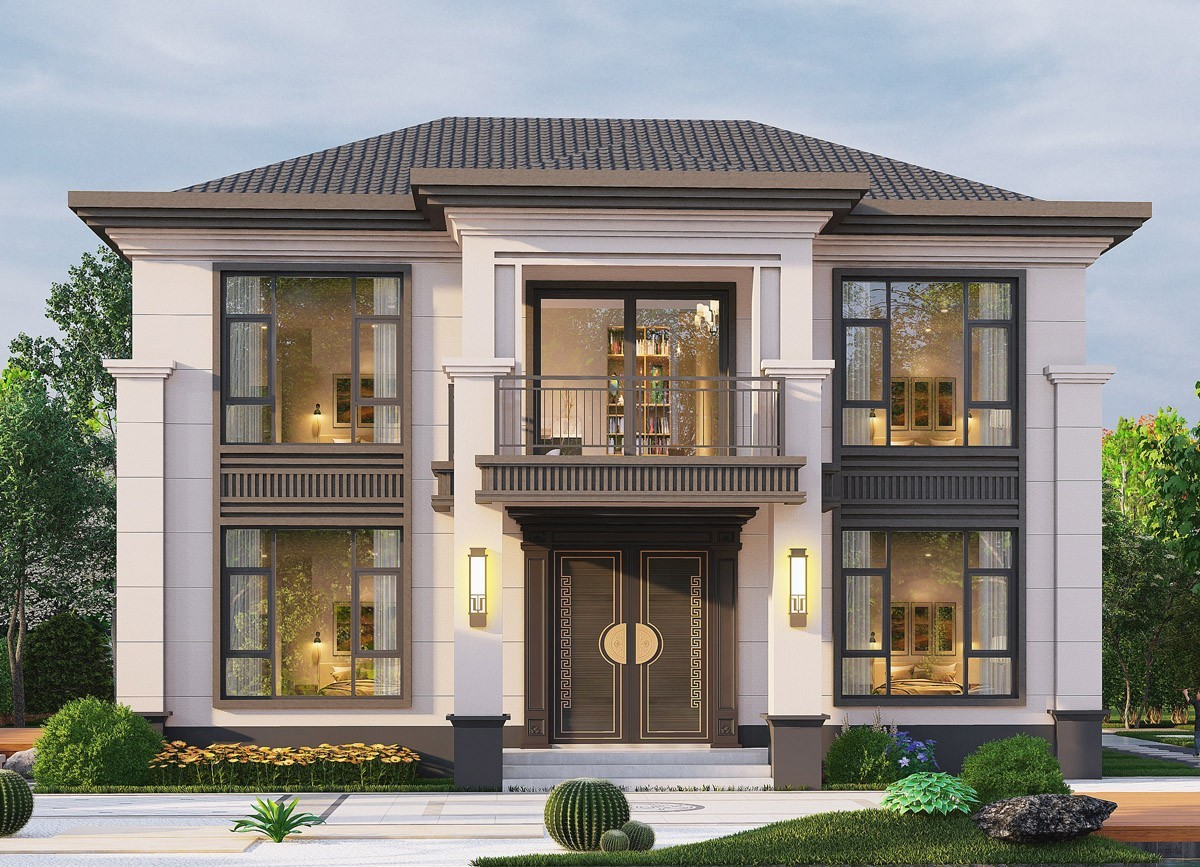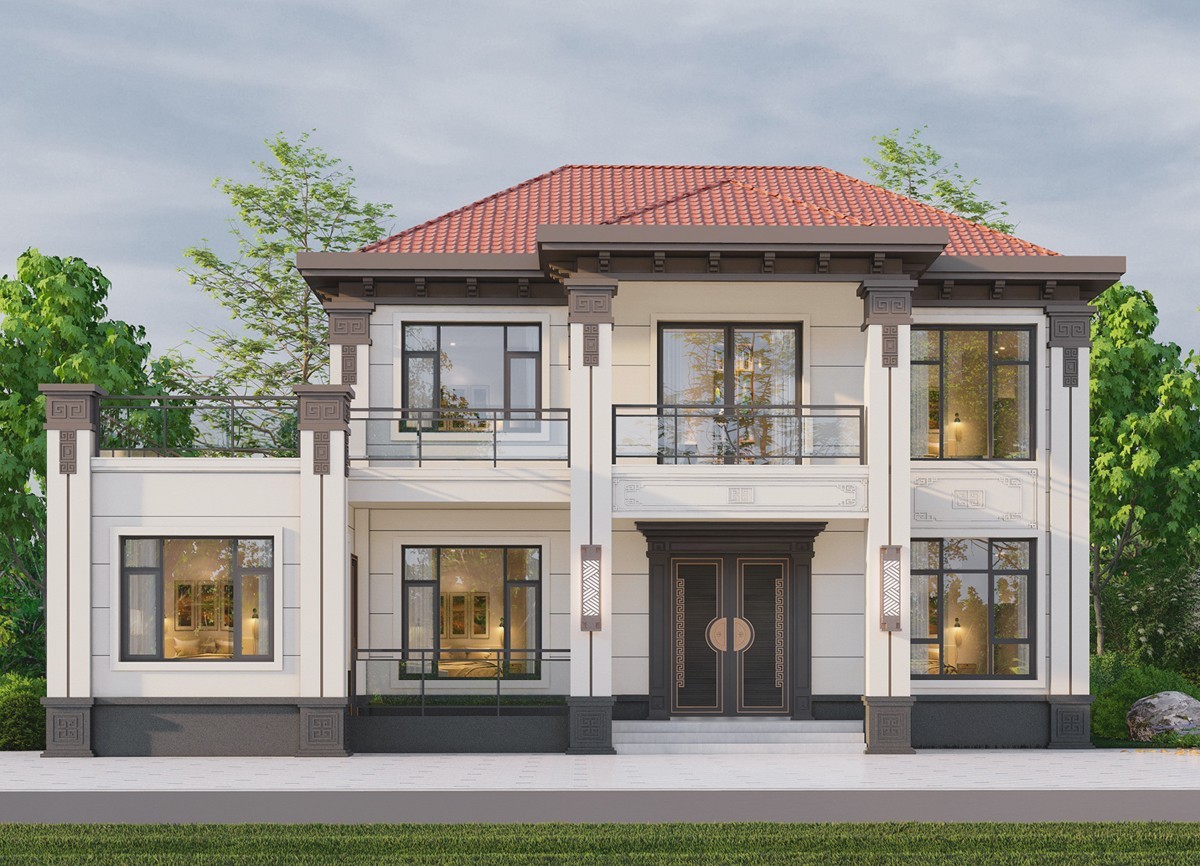 潍坊005 两层新中式(11.36x11.76米)-【易设计】